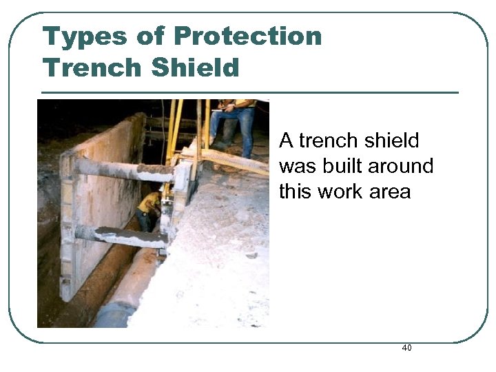 Types of Protection Trench Shield A trench shield was built around this work area 40