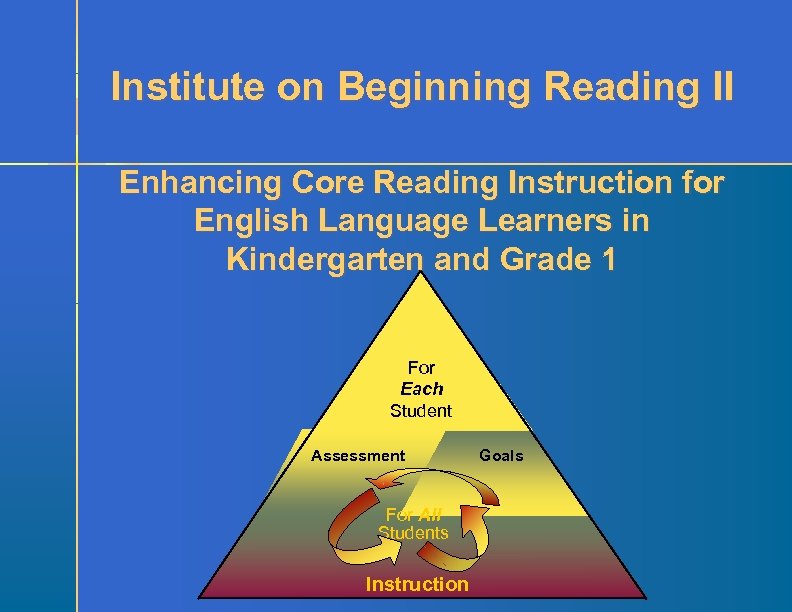 Institute on Beginning Reading II Enhancing Core Reading Instruction for English Language Learners in Kindergarten and Grade 1 For Each Student Assessment For All Students Instruction Goals