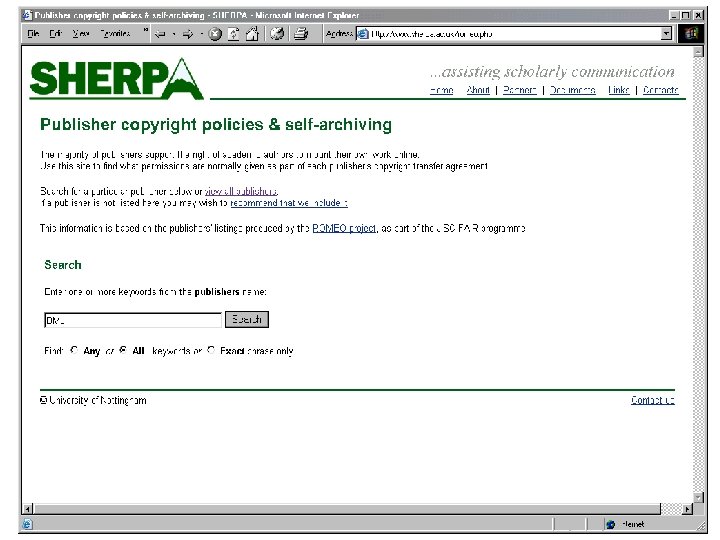 http: //www. sherpa. ac. uk bill. hubbard@nottingham. ac. uk