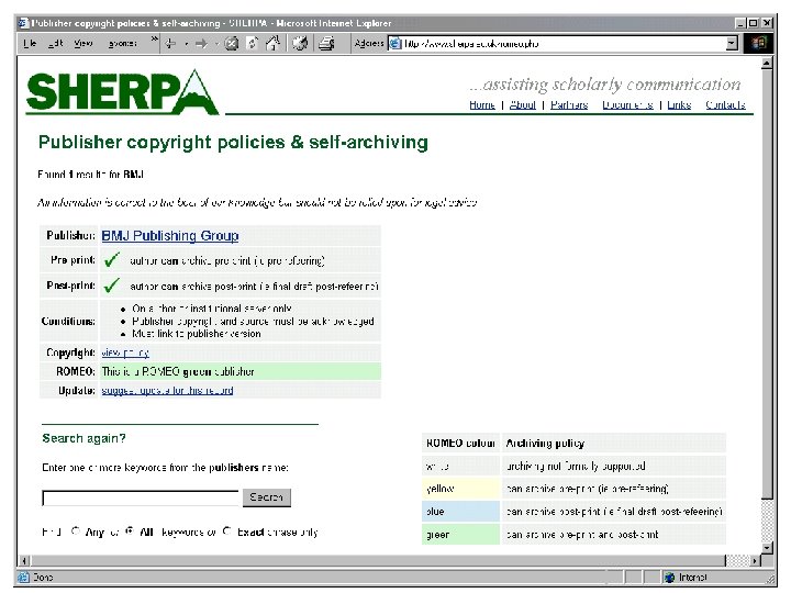 SHERPA D Securing a Hybrid Environment for Research Preservation and Access D Partner institutions – Birkbeck College, Birmingham, Bristol, Cambridge, Durham, Edinburgh, Glasgow, Imperial College, Kings College, Leeds, LSE, Newcastle, Nottingham, Oxford, Royal Holloway, School of Oriental and African Studies, Sheffield, University College London, York; the British Library and AHDS D www. sherpa. ac. uk