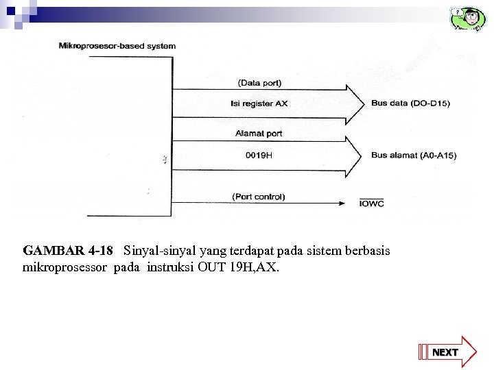 GAMBAR 4 -18 Sinyal-sinyal yang terdapat pada sistem berbasis mikroprosessor pada instruksi OUT 19 H, AX. NEXT