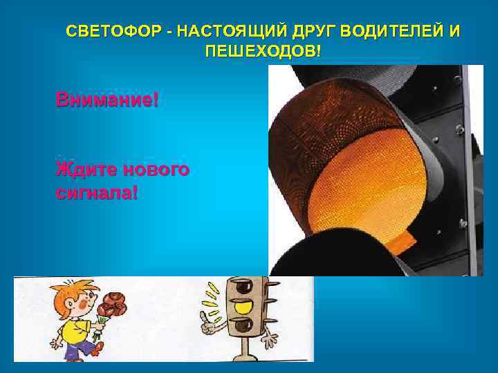 СВЕТОФОР - НАСТОЯЩИЙ ДРУГ ВОДИТЕЛЕЙ И ПЕШЕХОДОВ! Внимание! Ждите нового сигнала!
