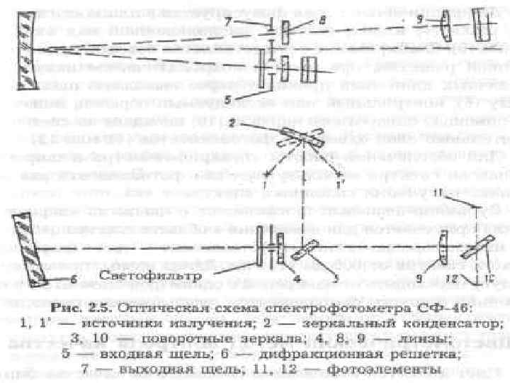 После кювет параллельные световые пучки проходят через калиброванные ослабители (диафрагмы), предназначенные для уравнивания интенсивностей световых потоков, и попадают на два приемника излучения (фотоэлементы), подключенные по дифференциальной схеме к нуль - индикатору (гальванометр, индикаторная лампа). Недостаток приборов отсутствие монохроматора, что приводит к потере селективности измерений; достоинства простота конструкции и высокая чувствительность благодаря большой светосиле.