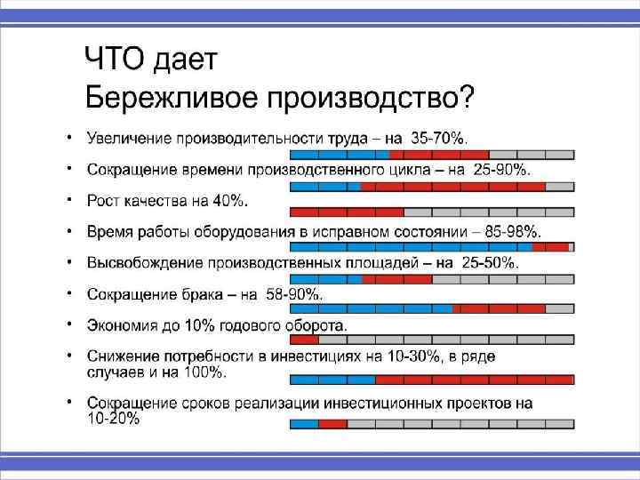 • Эффект экономии достигается за счёт сокращения семи видов скрытых потерь.