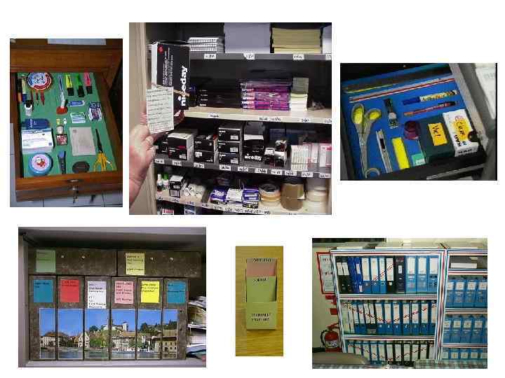 Цель одна – подходы разные Можно хранить и так… Так правильно… Возможно ли быстро отыскать необходимый инвентарь? Контрольный лист рабочего места Обозначение хранимого инвентаря