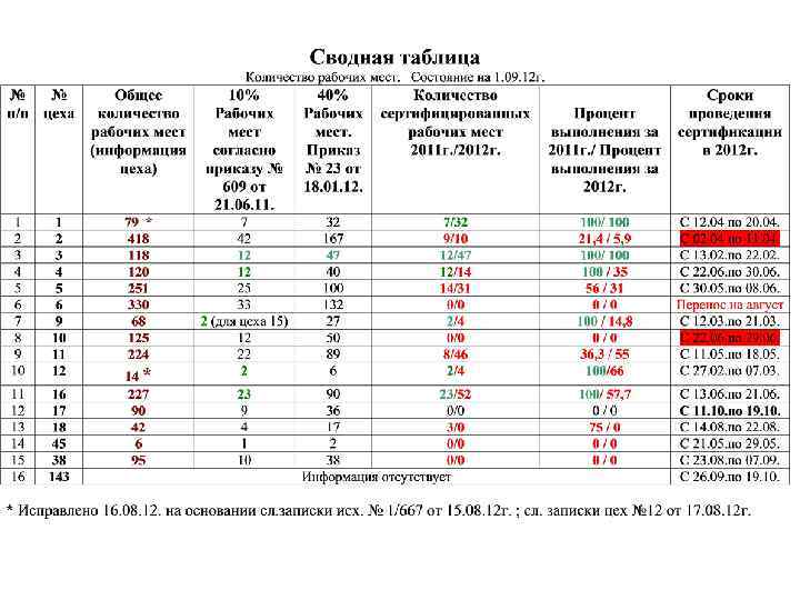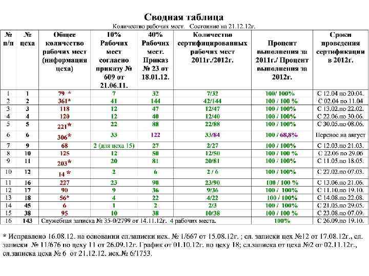 Информация о ходе сертификации заносится в сводную таблицу.