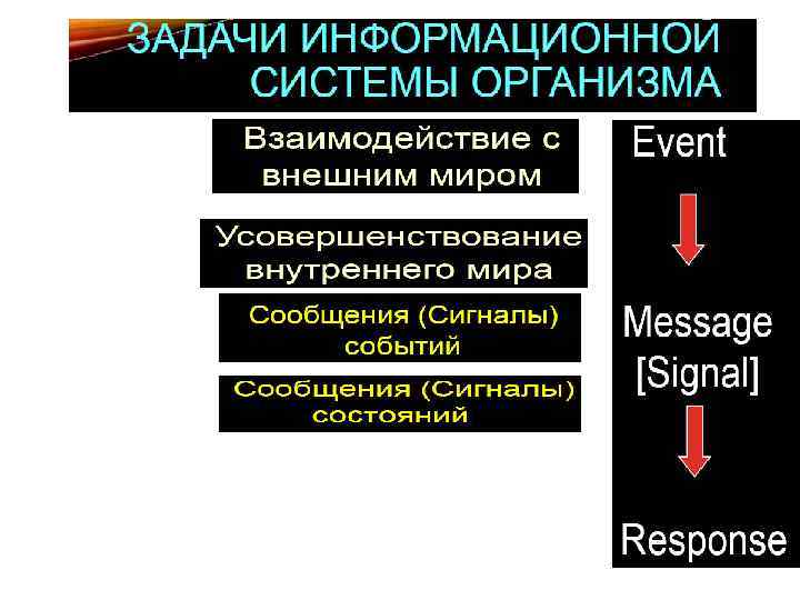 Патология сигнализации Типы первичных сигналов Избыток сигнала Дефицит сигнала Мимикрия или имитация сигнала Гормон Синдром Иценко. Кушинга (гиперкортицизм – избыток кортизола) Инсулинзависимый сахарный диабет (недостаток инсулина) Базедова болезнь (антитела к рецептору ТТГ – иммунологический имидж сигнала) Нейромедиатор Алкоголизм (избыток дофамина) Ожирение (избыток субстратов) Шизофрения ( избыток дофамина - позитивные эпизоды) Болезнь Паркинсона (дефицит дофамина) Шизофрения (недостаток дофамина – негативные эпизоды) Алкоголизм ( «ложные медиаторы» - ТГИХ. βкарболины) Наркомания (имитация сигнала)