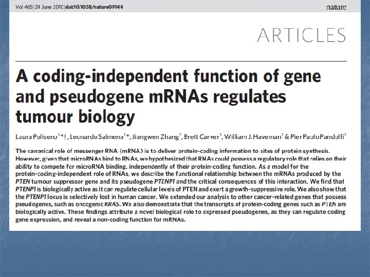 Non-coding DNA n ~98% of human DNA does not code directly for protein Pseudogenes (evolutionary relics) n Repetitive DNA n Interspersed n Minisatellite repeats (10 -30 bp) n Microsatellite repeats (< 10 bp) n n Regulatory regions VNTR