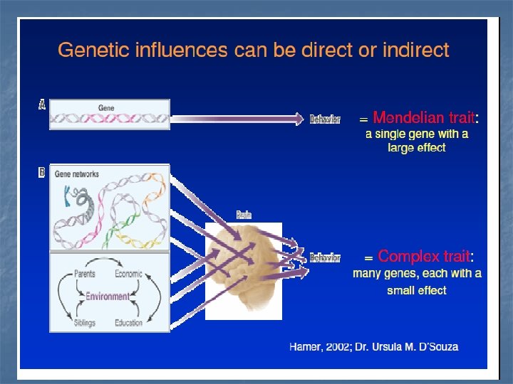 Shanahan and Hofer: Gx. E typology n Social context (E) may n n serve as a trigger for those predisposed compensate for genetic predisposition n n act as a control to prevent behaviors for which there is a genetic predisposition n n Avoidance of low levels of functioning through the absence of a stressor or provision of enriched setting Focus on social norms and structural constraints that are placed on people to limit choice enhance adaptation through proximal processes