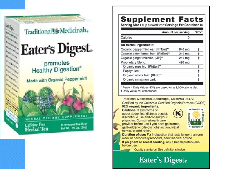 HERBAL MEDICINES Pros and cons of using infusions/teas vs. standardized extracts Specific conditions and applications ◦ Irritable bowel syndrome ◦ Upper respiratory infection ◦ insomnia