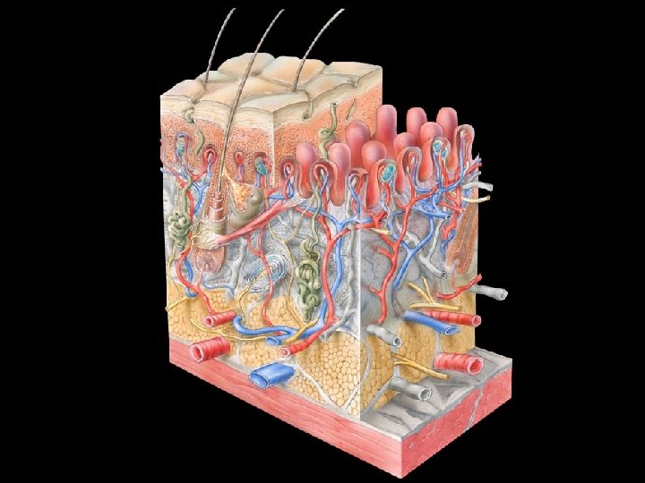 Largest Organ System • 1/3 of cardiac output is directed to skin • Surface area 18 -20 Sq Ft • 7% of body weight • Thickness 1. 5 -4 mm