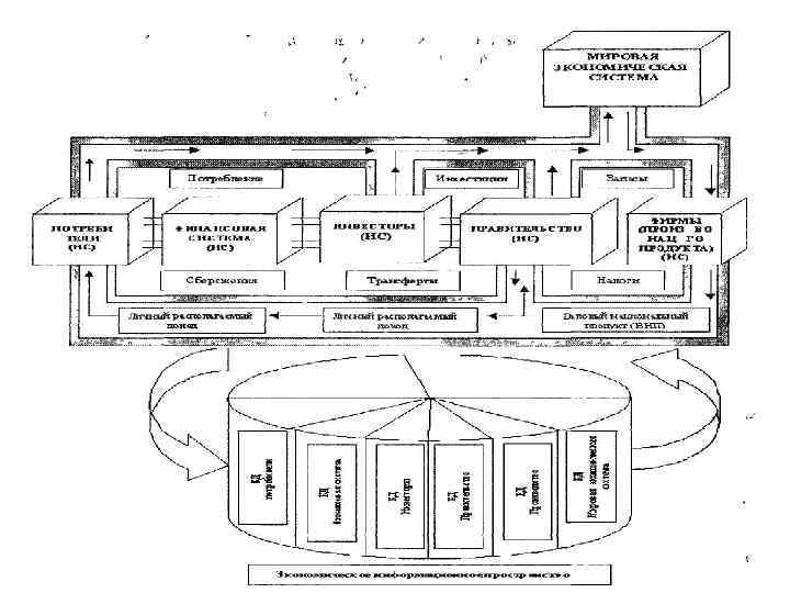 Информационные системы (ИС) используются в настоящее время в различных сферах экономики (рис. 1. 1). • На рисунке этом показаны в виде блоков: - предприятия, производящие национальный продукт; - правительство, собирающее налоги и выделяющее трансферты; - потребители, формирующие денежный поток; - финансовая система, аккумулирующая сбережения потребителей; - инвесторы, инвестирующие производство; - мировая экономическая система, связанная потоками экспорта и импорта с национальным общественным производством.