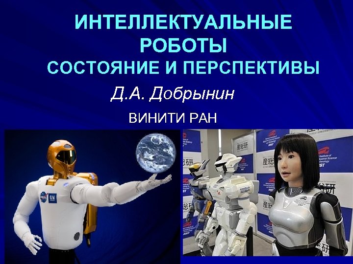 ИНТЕЛЛЕКТУАЛЬНЫЕ РОБОТЫ СОСТОЯНИЕ И ПЕРСПЕКТИВЫ Д. А. Добрынин ВИНИТИ РАН
