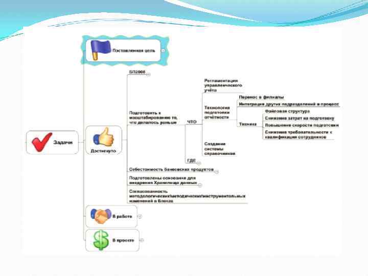Метод интеллектуальных карт Ситуация: пытаемся объяснить собеседнику сложное или информационно емкое (вывод продукции на новый рынок, стратегия развития, текущее состояние по бизнес-процессам). Проблема: никак не удается это сделать на словах. Решение: Лист бумаги и ручка – начинаем рисовать