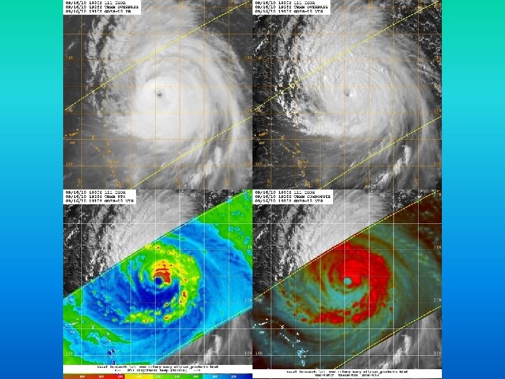 Microwave Sensing Satellites • Microwave satellites can better pierce clouds (not only see cloudtops) to more accurately portray precipitation fields. • Give a better portrayal of 3 -D structure, latent heat release and lack thereof. • Better resolve secondary eyewall structures. • Microwave satellites can give more detailed views of circulation field and radius of 34 -kt winds, correlated with intensity and area of high seas.