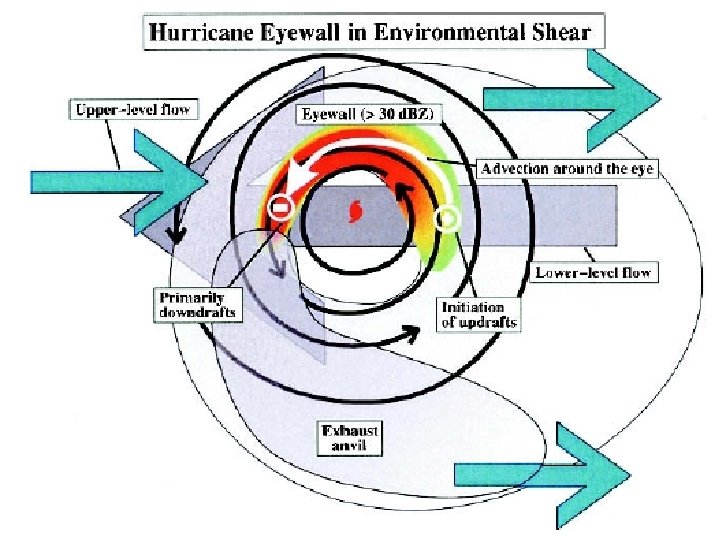 Vertical Wind Shear • Wavenumber-1 asymmetry from vertical wind shear. • Increases ventilation of system to the point that it reduces available heating-> generally results in weakening. • Deepest convection typically on downshear left side.