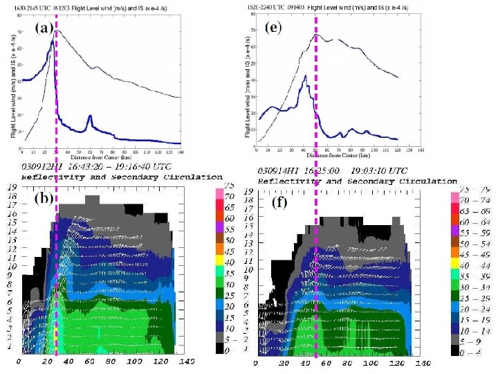 Secondary Eyewalls • Secondary eyewall formation. • AAM loss to sea surface via friction. Inward radial winds, though still a greater cyclonic component. Convective bands form away from center; cut off warm, moist inflow. Reduce heating of inner eyewall, induce pressure falls outside of inner eyewall. • Intensify at expense of inner eyewall and contract to replace old eyewall.