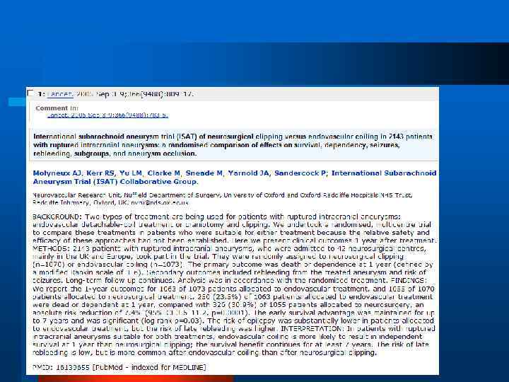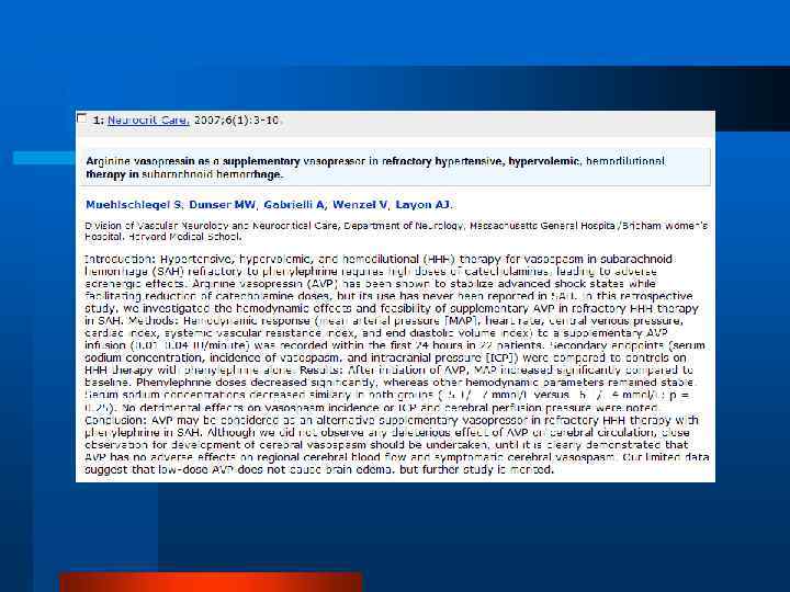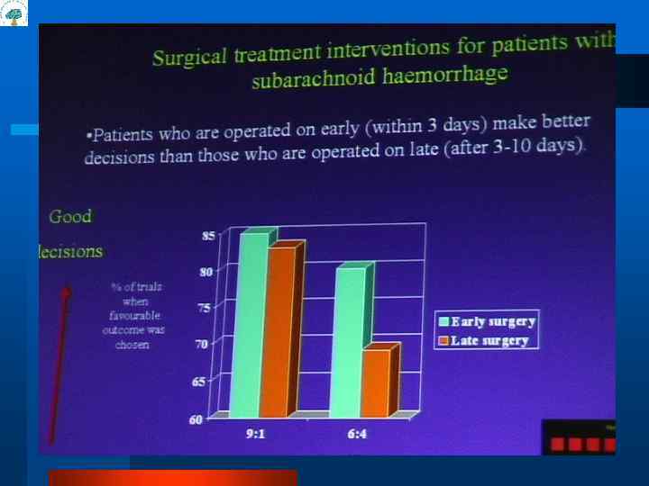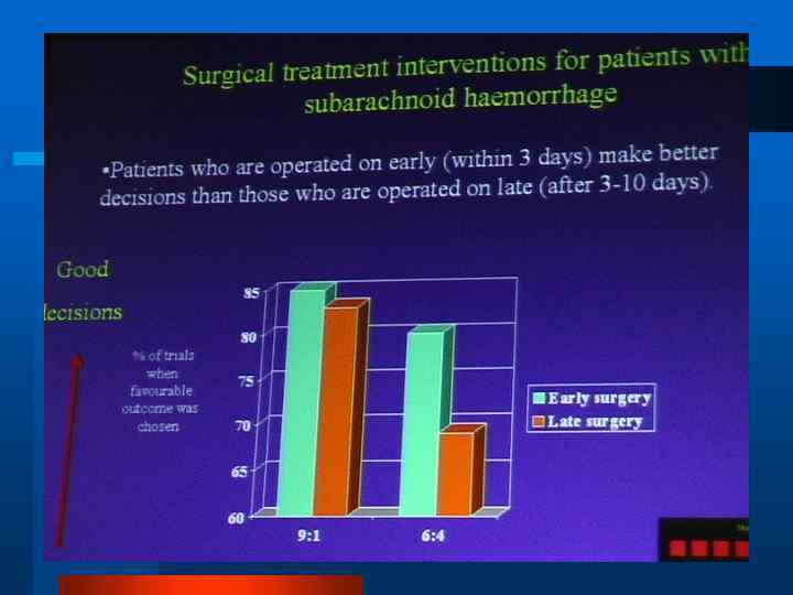 Преимущества раннего хирургического вмешательства Снижается вероятность повторного разрыва (летальность при повторном разрыве 70 -80%) l Уменьшается тяжесть церебрального вазоспазма (удаление сгустков крови) l Повышается безопасность мероприятий интенсивной терапии (3 «Н» -терапии и т. д. ) l Сравнительный анализ хирургического и консервативного лечения САК Haring J. Nauta, Aneurismal subarachnoid hemorrhage, Critical Care Report, 1989, 1: 1 -22 -25