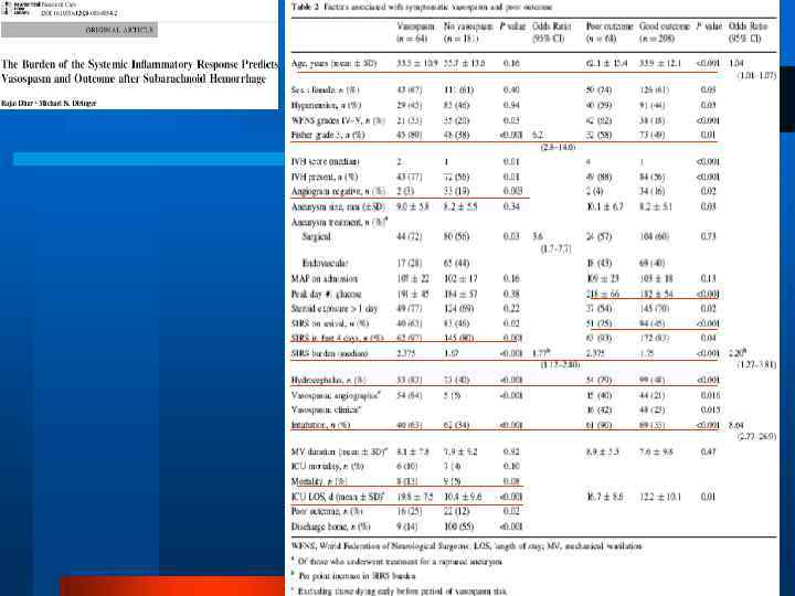 WFNS шкала J. Neurosurgery, 68: 985 -6, 1988 GCS Очаговый дефицит 1 15 - 2 13 -14 - 3 13 -14 + 4 7 -12 - или+ 5 3 -6 - или+ 0