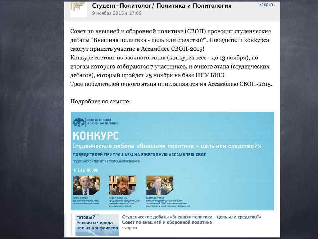 Опыт других ВУЗов МГИМО: 2048 подписчиков группы факультета СПб. ГУ: 1989 МГУ: 1688