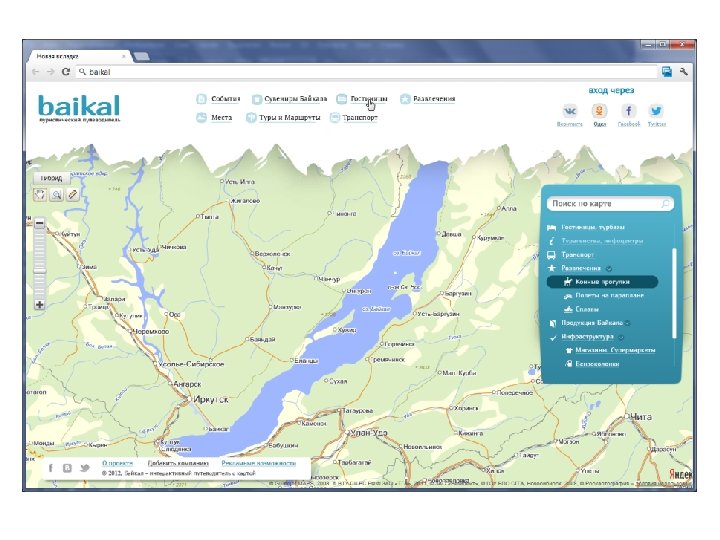 Предлагаемое решение • Интерактивный туристический сервис с картой по Байкалу для российских и иностранных туристов (on-line / off-line)