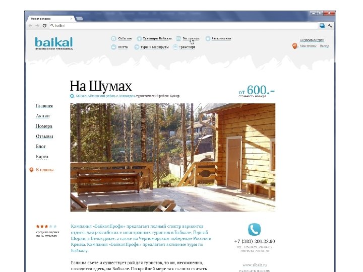 Таблица цен на услуги Сайты Цены на баннер (240 X 400), руб. в месяц Информаци онное сопровожде ние, руб. в год Привлечени е туристов, процент от тура Привлечени е туристов, процент от заказа номера Baikalov. ru 4000 12000 7% 15% Baikaler. ru 4100 12000 - - Baikalika. ru 3000 - 10% - Наш сайт Baikalmap. com 2500 Бесплатно 5% 10%
