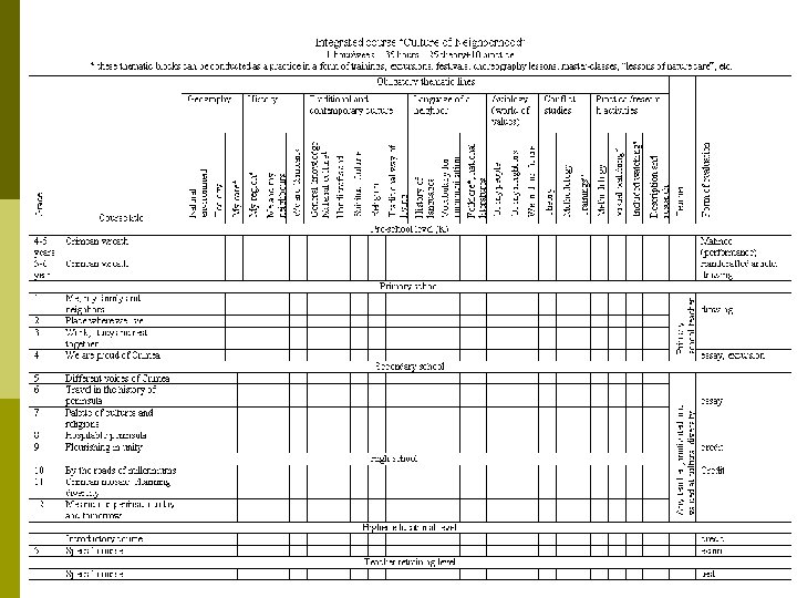 Multicultural (intercultural) approach § Multiculturalism in education – is neither teaching the native languages to ethnic minority children (or even opening of the national schools), nor total introduction of the school subject “multiculturalism”. § It is a perspective revision of the whole educational system and methods of teaching. § What is new in the intercultural approach is the priority it gives to interaction, reciprocal relations and mutual influence. § It is characterized by a transition from hierarchic systems to networks: cultures interact and enrich each other within a web of interdependence. § The long-term goal of promoting active tolerance and early conflict prevention