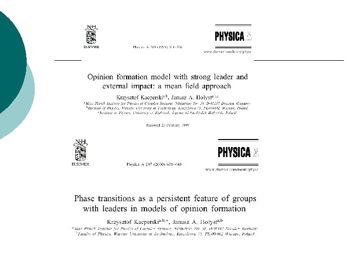 Sekcja Polskiego Towarzystwa Fizycznego: Fizyka w Ekonomii i Naukach Społecznych (FENS) http: //ptf. fuw. edu. pl/fens/