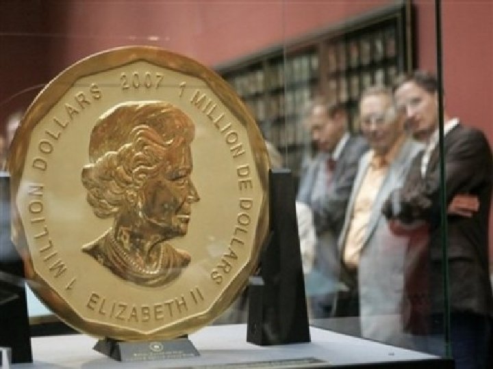 Самая большая в мире монета Диаметр - 51 см. , толщина - около 3 см. и вес - 100 кг. Монета в миллион канадских долларов. Работа Канадского монетного двора. На одной стороне - портрет формальной главы канадского государства королевы Елизаветы II, на другой — кленовый лист. На ее изготовление потребовалось около восьми недель. Изображение королевы – авторство канадского скульптора Сюзен Блант, а на реверсе – изображение кленовой ветви с тремя листьями – работа старшего гравера монетного двора Стэна Уиттена.