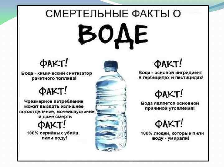 Факт восьмой: человек без воды умирает Если человек теряет 2% воды от массы своего тела, то у него возникает сильная жажда. Если проценты потерянной воды увеличатся до 10, то у человека начнутся галлюцинации. При потере в 12% человек не сможет восстановиться без помощи врача. При потере в 20% человек умирает.