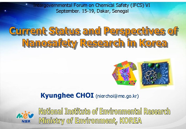 Intergovernmental Forum on Chemical Safety (IFCS) VI September. 15 -19, Dakar, Senegal Kyunghee CHOI (nierchoi@me. go. kr) NIER