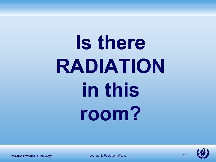 Is there RADIATION in this room? Radiation Protection in Cardiology Lecture 3: Radiation effects 10