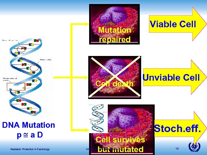 Viable Cell Mutation repaired Cell death DNA Mutation p a. D Radiation Protection in Cardiology Unviable Cell Stoch. eff. Cell survives but mutated Lecture 3: Radiation effects 18
