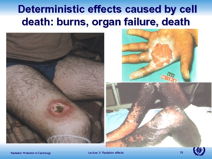 Deterministic effects caused by cell death: burns, organ failure, death Radiation Protection in Cardiology Lecture 3: Radiation effects 19