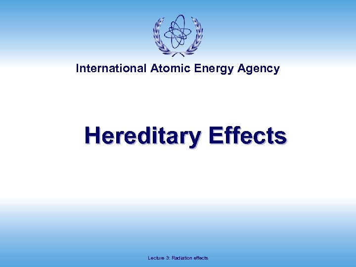 International Atomic Energy Agency Hereditary Effects Lecture 3: Radiation effects