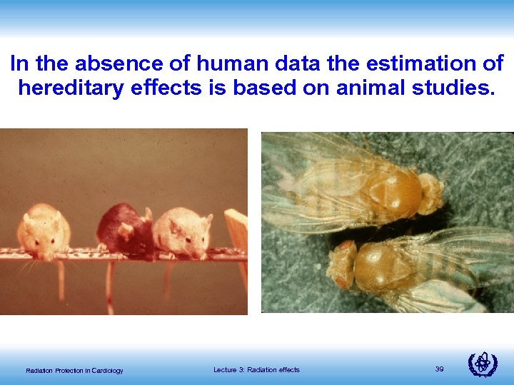 In the absence of human data the estimation of hereditary effects is based on animal studies. Radiation Protection in Cardiology Lecture 3: Radiation effects 39