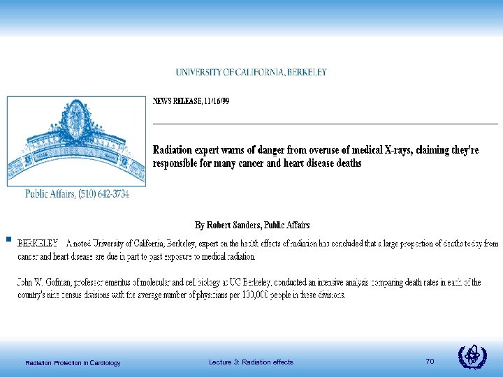 Radiation Protection in Cardiology Lecture 3: Radiation effects 70