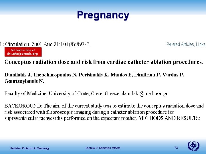 Pregnancy Radiation Protection in Cardiology Lecture 3: Radiation effects 72