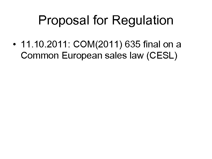 Proposal for Regulation • 11. 10. 2011: COM(2011) 635 final on a Common European sales law (CESL)