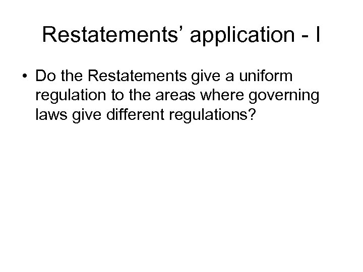 Restatements’ application - I • Do the Restatements give a uniform regulation to the areas where governing laws give different regulations?