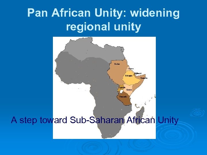Pan African Unity: widening regional unity A step toward Sub-Saharan African Unity