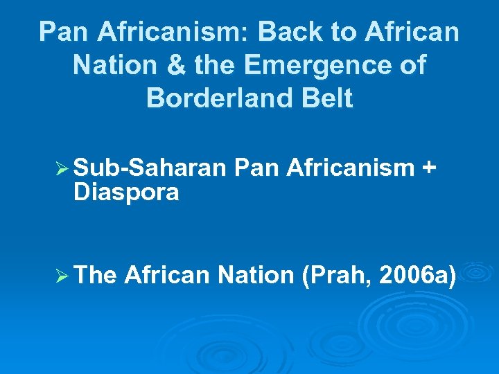 Pan Africanism: Back to African Nation & the Emergence of Borderland Belt Ø Sub-Saharan Pan Africanism + Diaspora Ø The African Nation (Prah, 2006 a)