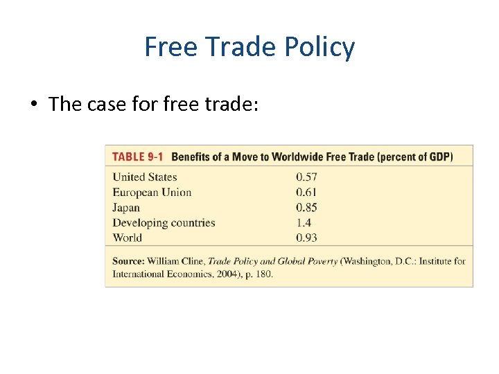 Free Trade Policy • The case for free trade:
