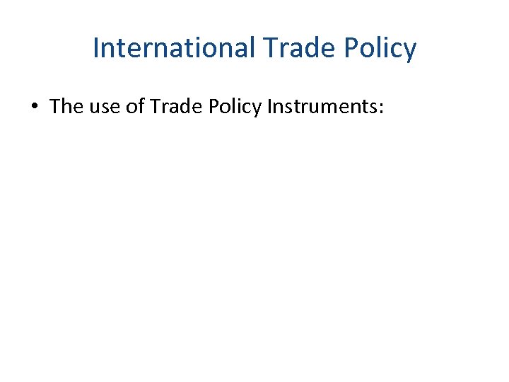 International Trade Policy • The use of Trade Policy Instruments: