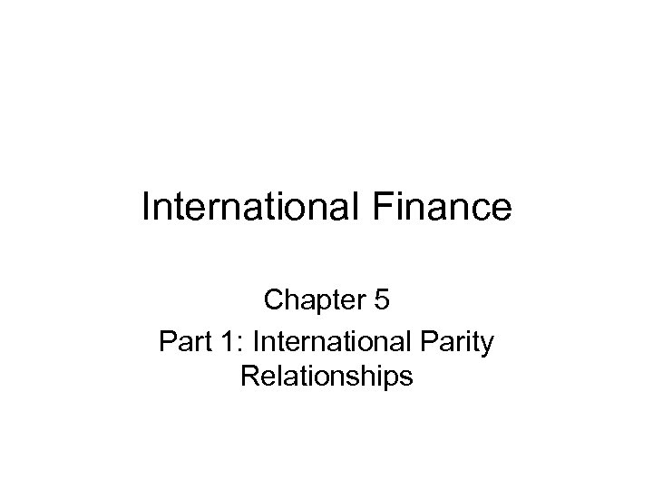International Finance Chapter 5 Part 1: International Parity Relationships