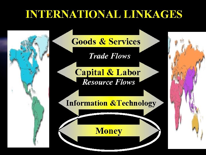 INTERNATIONAL LINKAGES Goods & Services Trade Flows Capital & Labor Resource Flows Information &Technology Money