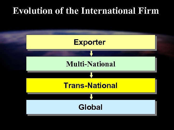 Evolution of the International Firm Exporter Multi-National Trans-National Global