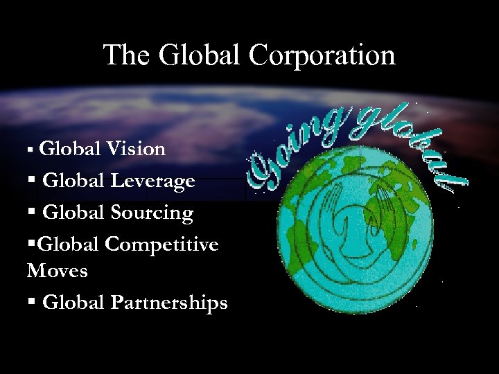 The Global Corporation § Global Vision § Global Leverage § Global Sourcing §Global Competitive Moves § Global Partnerships