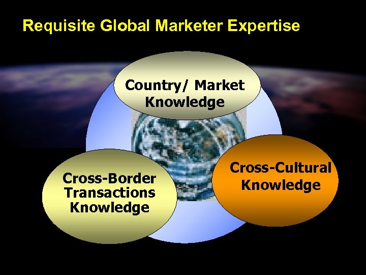 Requisite Global Marketer Expertise Country/ Market Knowledge Cross-Border Transactions Knowledge Cross-Cultural Knowledge
