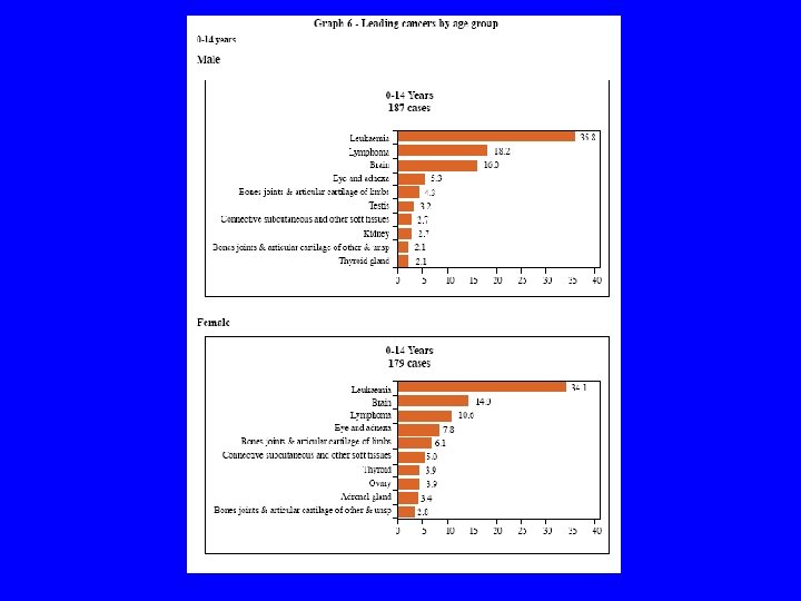 Leading Cancer sites in Male (2005) Rank 1 Lip Oral Cavity & Pharynx 1240 12. 7 14. 1 2 Trachea Bronchus & Lung 666 6. 9 7. 7 3 Esophagus 498 5. 1 5. 8 4 Colon & Rectum 388 4. 0 4. 4 5 Lymphoma 360 3. 7 3. 9 6 Larynx 324 3. 3 3. 7 7 Leukaemia 313 3. 2 3. 3 8 Prostate 303 3. 1 3. 5 9 Unknown Primary Site 257 2. 9 10 Brain 171 1. 8 All Sites 6058 62. 3 68. 1 Site Male No CR ASR
